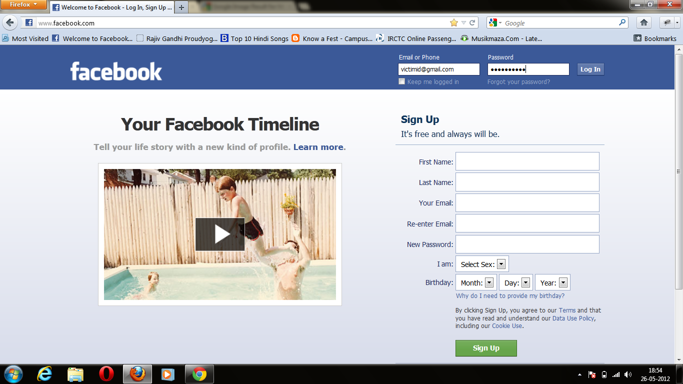1.Now open the Facebook page and enter your victim's email,and any password.